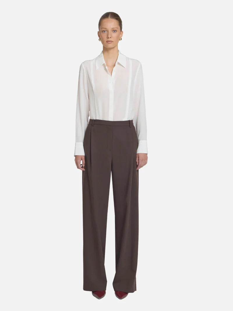An elevated classic, the Idol Pant is crafted in a soft rayon blend fabrication in a subtle neutral hue. Falling to a full length and wide leg silhouette, this style features front tucks and functional angled side pockets, pairing perfectly with tailored blazers and shirting for effortless styling.